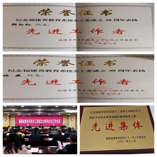 虎年新春即將到來(lái)之際,我校育人工作再傳喜訊。在1月26日召開的福建省教育系統(tǒng)關(guān)工委成立30周年紀(jì)念工作會(huì)議上,我校護(hù)理學(xué)院關(guān)工委榮獲“福建省教育系統(tǒng)關(guān)心下一代工作先進(jìn)集體”榮譽(yù)稱號(hào),健康管理系關(guān)工委常務(wù)副主任鄭向紅,醫(yī)學(xué)技術(shù)系黨總支副書記、系關(guān)工委秘書長(zhǎng)林燕獲得“福建省教育系統(tǒng)關(guān)心下一代工作先進(jìn)工作者”榮譽(yù)稱號(hào)。