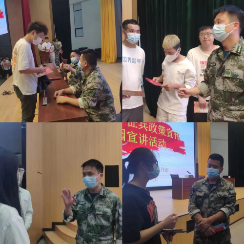 通過本次活動,同學(xué)們對征兵政策有了更深的了解,進一步理解了應(yīng)征入伍的意義,強化了同學(xué)們服兵役的責(zé)任感和參軍保衛(wèi)祖國的意識,同時也讓同學(xué)們熱血沸騰,增強了同學(xué)們的國防觀念,激發(fā)了同學(xué)們的愛國主義熱情。