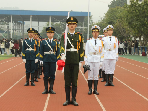 旗手振臂一揮,鮮艷的五星紅旗在威武雄壯的《義勇軍進(jìn)行曲》中徐徐展開,全體在場師生目視五星紅旗冉冉升起,在熠熠晨光中迎風(fēng)飄揚(yáng),愛國之情在師生們心中滌蕩。升旗儀式,學(xué)子們致敬五星紅旗,與國旗一同升起的還有對新學(xué)期、新時代的無限向往。