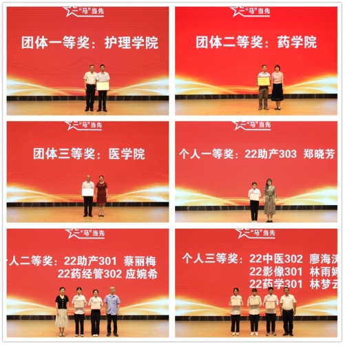 經(jīng)過激烈角逐,護理學(xué)院榮獲團體一等獎,藥學(xué)院榮獲團體二等獎,醫(yī)學(xué)院榮獲團體三等獎。22助產(chǎn)303鄭曉芳獲得個人一等獎,22助產(chǎn)301蔡麗梅、22藥經(jīng)管302應(yīng)婉希獲得個人二等獎,22中醫(yī)302廖海濤、22影像301林雨婷、22藥學(xué)301林夢云獲得個人三等獎,22衛(wèi)管301鐘曉清等19名同學(xué)獲得個人優(yōu)勝獎。