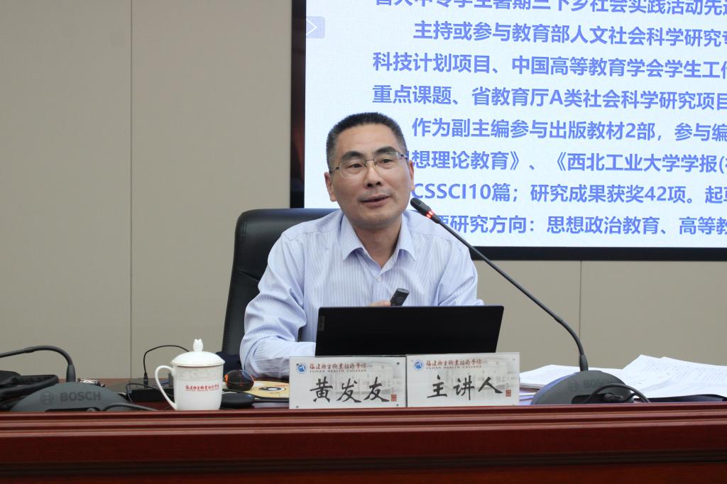 福州大學(xué)馬克思主義學(xué)院黨委書記黃發(fā)友教授開展《高校輔導(dǎo)員工作能力提升與職業(yè)生涯規(guī)劃——從事學(xué)生工作、學(xué)生思想政治教育理論研究的一點(diǎn)心得體會(huì)》專題講座。講座中,黃發(fā)友結(jié)合自身豐富的理論研究與實(shí)踐經(jīng)驗(yàn),深入剖析高校輔導(dǎo)員在工作能力提升和職業(yè)生涯規(guī)劃方面的要點(diǎn),強(qiáng)調(diào)輔導(dǎo)員在學(xué)生思想政治教育工作中的重要角色,為輔導(dǎo)員們清晰梳理了在日常工作中如何將教育理論與實(shí)踐有機(jī)結(jié)合,同時(shí)就如何規(guī)劃自身職業(yè)生涯路徑提出建設(shè)性意見,助力輔導(dǎo)員們在專業(yè)發(fā)展道路上明確方向。