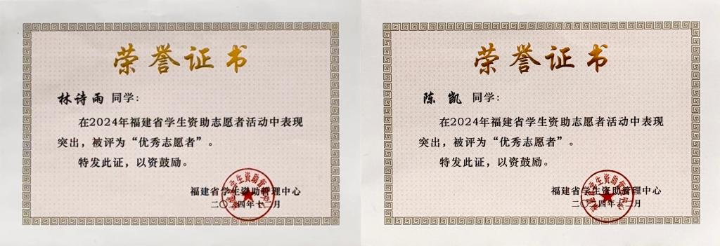 被評為2024年福建省學(xué)生資助優(yōu)秀志愿者