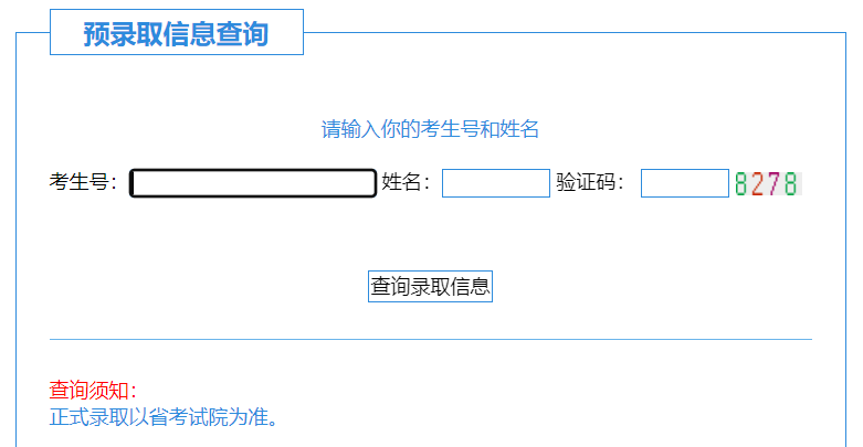 ②界面輸入“考生號(hào)、姓名”,即可查詢錄取結(jié)果。