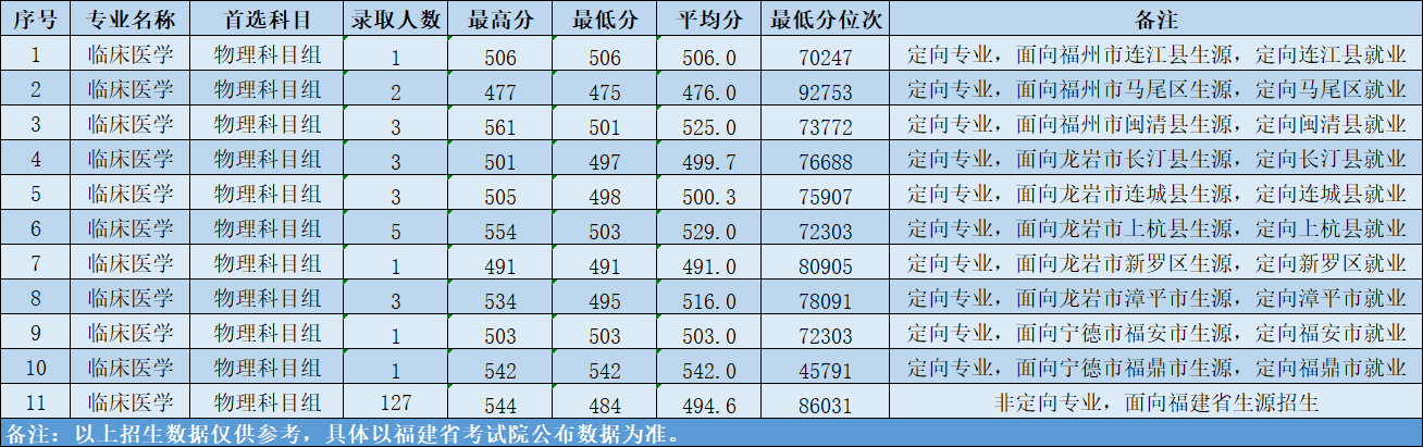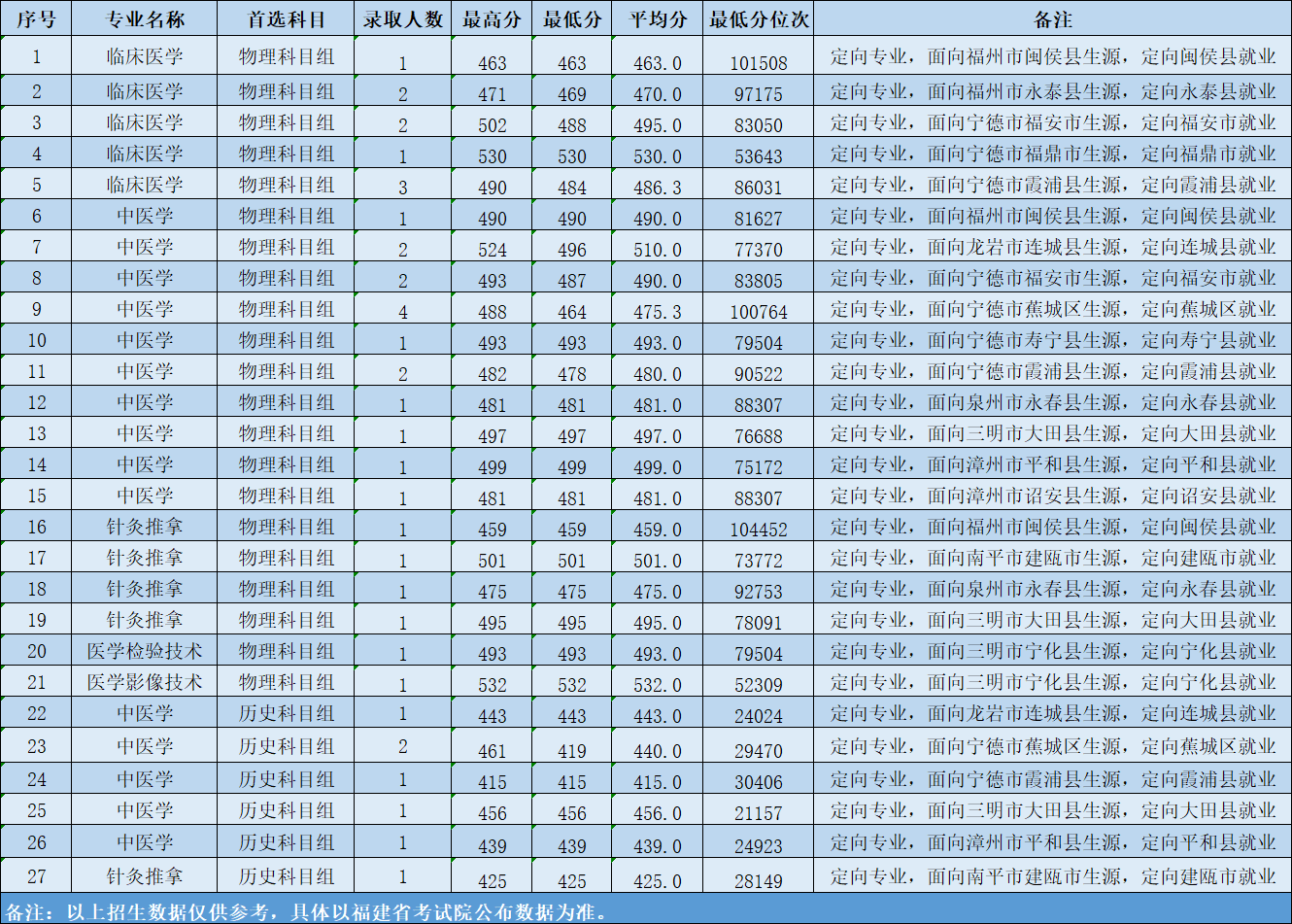 2024年福建省錄取分數(shù)及位次情況(定向?qū)I(yè))