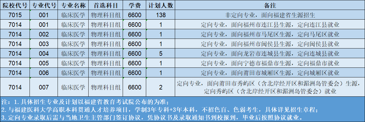 2025年福建省普通高考分專業(yè)招生計劃表(定向?qū)I(yè))