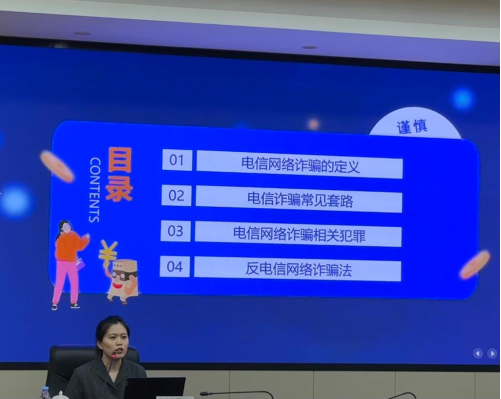 此次培訓(xùn)由閩侯縣人民法院陳葉玲擔(dān)任宣講人,她圍繞電信網(wǎng)絡(luò)詐騙的定義、電信詐騙常見(jiàn)套路、電信網(wǎng)絡(luò)詐騙相關(guān)犯罪、反電信網(wǎng)絡(luò)詐騙法四個(gè)方面,通過(guò)案例分析,以通俗易懂的語(yǔ)言講解了常見(jiàn)詐騙案件的特點(diǎn)和犯罪分子的慣用手法、作案方式、識(shí)別和防范技巧。