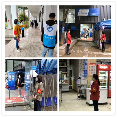在校園全員核酸采樣過程中,學生工作部黨員奮戰(zhàn)在一線,協(xié)助做好前期院系核酸安排,現(xiàn)場做好外圍排隊引導,學生核酸檢測信息登記、體溫檢測等,高效、有序地完成了有關工作。在常態(tài)化校園生活中,還深入到明湖餐廳、快遞驛站、校園超市等開展疫情防控和相關政策宣傳,引導師生按位就坐,有序排隊,做好疫情防控的“督導員”。