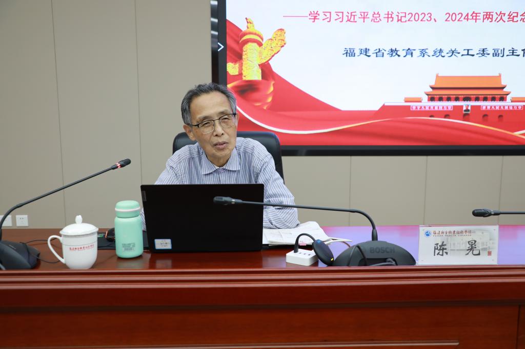 為深入學(xué)習(xí)貫徹習(xí)近平新時(shí)代中國(guó)特色社會(huì)主義思想,發(fā)揚(yáng)紅色傳統(tǒng),傳承紅色基因,引領(lǐng)師生繼續(xù)堅(jiān)定跟黨走、建功新時(shí)代,10月22日,我校關(guān)工委邀請(qǐng)福建省教育系統(tǒng)關(guān)工委主任陳晃走進(jìn)學(xué)校思政課堂,為校師生代表舉辦紅色精神專題講座,福建省教育系統(tǒng)關(guān)工委副秘書長(zhǎng)、辦公室主任羅永倩陪同。校關(guān)工委主任嚴(yán)肅、副主任陳雄出席講座,校關(guān)工委、二級(jí)學(xué)院關(guān)工委、學(xué)生工作部黨支部、團(tuán)委負(fù)責(zé)人、輔導(dǎo)員代表和學(xué)生代表共100余人參加講座,講座由副校長(zhǎng)、校關(guān)工委副主任黃銘珊主持。