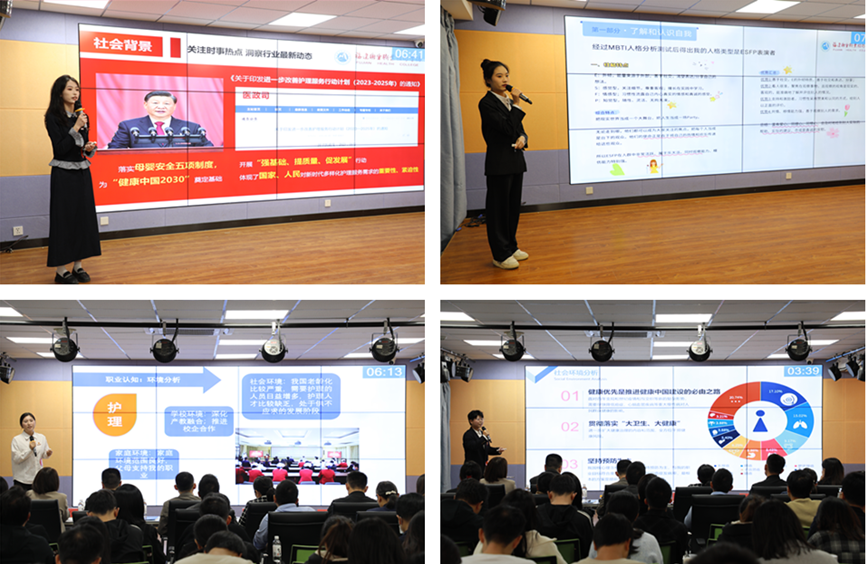 大賽以“筑夢(mèng)青春志在四方,規(guī)劃啟航職引未來”為主題,設(shè)有成長(zhǎng)賽道和就業(yè)賽道。成長(zhǎng)賽道選手圍繞職業(yè)目標(biāo)、行動(dòng)成果和目標(biāo)契合度三方面分享自己的生涯發(fā)展報(bào)告,就業(yè)賽道選手從個(gè)人求職意向和職業(yè)準(zhǔn)備情況兩方面進(jìn)行主題陳述,展示個(gè)人的綜合素質(zhì)、崗位能力和發(fā)展?jié)摿?。每位選手主題陳述后,評(píng)委老師進(jìn)行提問、點(diǎn)評(píng),并根據(jù)選手路演表現(xiàn)進(jìn)行實(shí)時(shí)打分。整場(chǎng)比賽歷時(shí)四個(gè)小時(shí),選手們從自我認(rèn)知、職業(yè)環(huán)境分析、職業(yè)目標(biāo)確定、評(píng)估與調(diào)整等方面,全面展示自己的職業(yè)規(guī)劃。評(píng)委們對(duì)選手們的精彩表現(xiàn)給予充分肯定的同時(shí)指出存在的問題,鼓勵(lì)選手們堅(jiān)定職業(yè)理想和目標(biāo),在實(shí)踐中加強(qiáng)對(duì)職業(yè)的深入探索,進(jìn)一步提升職業(yè)能力和就業(yè)競(jìng)爭(zhēng)力。