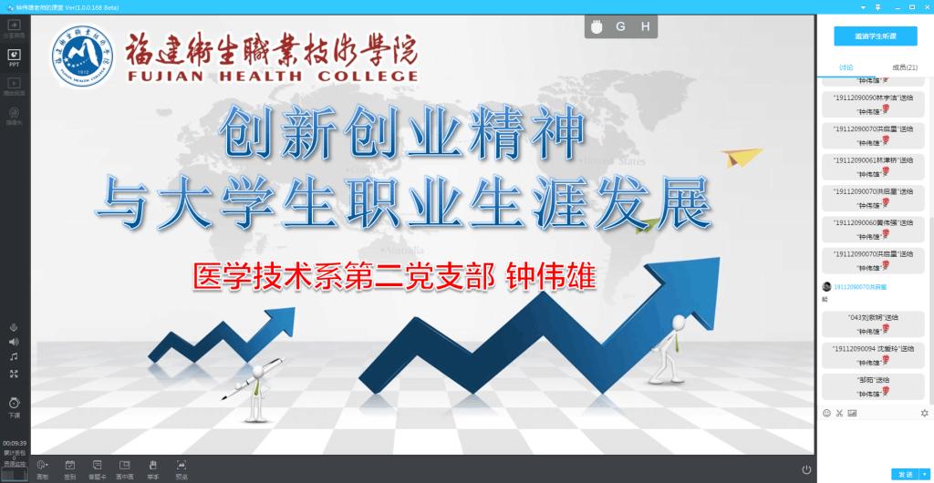 3月26日晚,借助騰訊課堂直播平臺,鐘偉雄老師給19級創(chuàng)新創(chuàng)業(yè)小組的同學(xué)們帶來一場題為《創(chuàng)新創(chuàng)業(yè)精神與大學(xué)生職業(yè)生涯發(fā)展》的直播培訓(xùn)講座。同學(xué)的創(chuàng)新創(chuàng)業(yè)熱情被點(diǎn)燃。