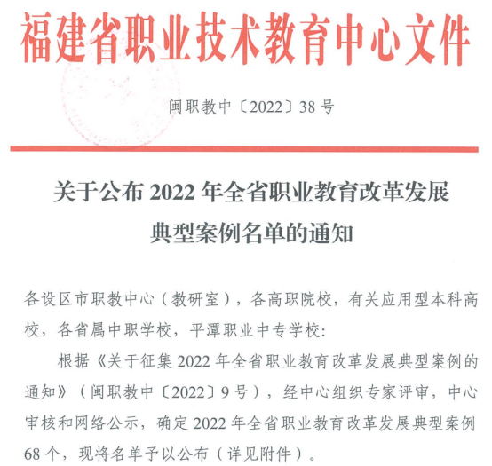 喜報 | 我系案例成功入選2022年福建省職業(yè)教育改革發(fā)展典型案例名單