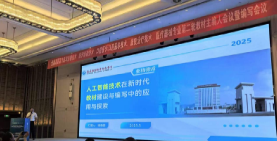 本次共派出13位教師參與到了10本教材的編寫工作,其中鐘偉雄、陳文山兩位老師分別擔(dān)任醫(yī)療器械類專業(yè)《電子技術(shù)應(yīng)用》、《醫(yī)用電子儀器》的主編工作;另有5位老師擔(dān)任各自相關(guān)專業(yè)的副主編工作。鐘偉雄老師受邀在會上以《人工智能技術(shù)在新時代教材建設(shè)與編寫中的應(yīng)用與探索》為題作專題報告,展示了AI在內(nèi)容生成、個性化學(xué)習(xí)資源開發(fā)與質(zhì)量評估中的最新實踐。