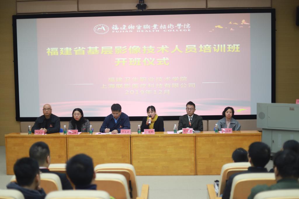 12月7日上午,福建省基層影像培訓(xùn)基地揭牌儀式在我校實(shí)訓(xùn)樓錄播廳舉行。我校蘇友新校長(zhǎng)、黃銘珊副校長(zhǎng)、上海聯(lián)影醫(yī)療科技有限公司華南區(qū)大客戶(hù)總監(jiān)吳麗萍女士、醫(yī)學(xué)技術(shù)系領(lǐng)導(dǎo)班子及醫(yī)學(xué)影像和醫(yī)療設(shè)備教研室的全體教師參加了開(kāi)班儀式。開(kāi)班儀式上,蘇友新校長(zhǎng)代表學(xué)院對(duì)參加培訓(xùn)的老師表示熱烈的歡迎。他表示,隨著建設(shè)“健康中國(guó)”戰(zhàn)略的步伐加快,人民群眾對(duì)醫(yī)療衛(wèi)生服務(wù)的需求不斷在增強(qiáng),我們的治療手段也要不斷豐富,向更高更深領(lǐng)域攀躍,才能不斷滿(mǎn)足需求。他預(yù)祝了學(xué)員們通過(guò)本次培訓(xùn)班的學(xué)習(xí)有所收獲,今后能更好的服務(wù)基層。