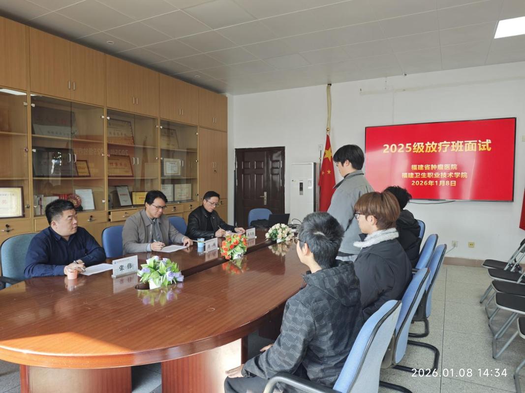 1月8日上午,醫(yī)學(xué)技術(shù)與工程學(xué)院舉辦2025級放射治療方向班面試選拔會。學(xué)院特邀福建省腫瘤醫(yī)院的張偉、傅萬凱、陳超等3位醫(yī)院帶教老師擔任此次面試的專家評委,來自25級醫(yī)學(xué)影像技術(shù)專業(yè)的36名學(xué)生參加本次面試。