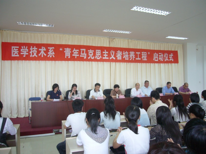 在紀(jì)念五四運(yùn)動(dòng)九十一周年這個(gè)光榮的日子里,醫(yī)學(xué)技術(shù)系在行政樓六樓會(huì)議室隆重舉行“青年馬克思主義者培養(yǎng)工程”(以下簡(jiǎn)稱“青馬工程”)啟動(dòng)儀式。院黨委陳雄副書記、魏立娜副院長(zhǎng)、黨委工作部董榕部長(zhǎng)、學(xué)工處鄭力宏處長(zhǎng)、黃銘珊副處長(zhǎng)、院團(tuán)委邱滾忠書記、系黨總支洪聿榮副書記等領(lǐng)導(dǎo)出席了啟動(dòng)儀式。 “青馬工程”第一期培訓(xùn)班共有學(xué)員50余人。啟動(dòng)儀式由系團(tuán)總支書記黃小芳主持。