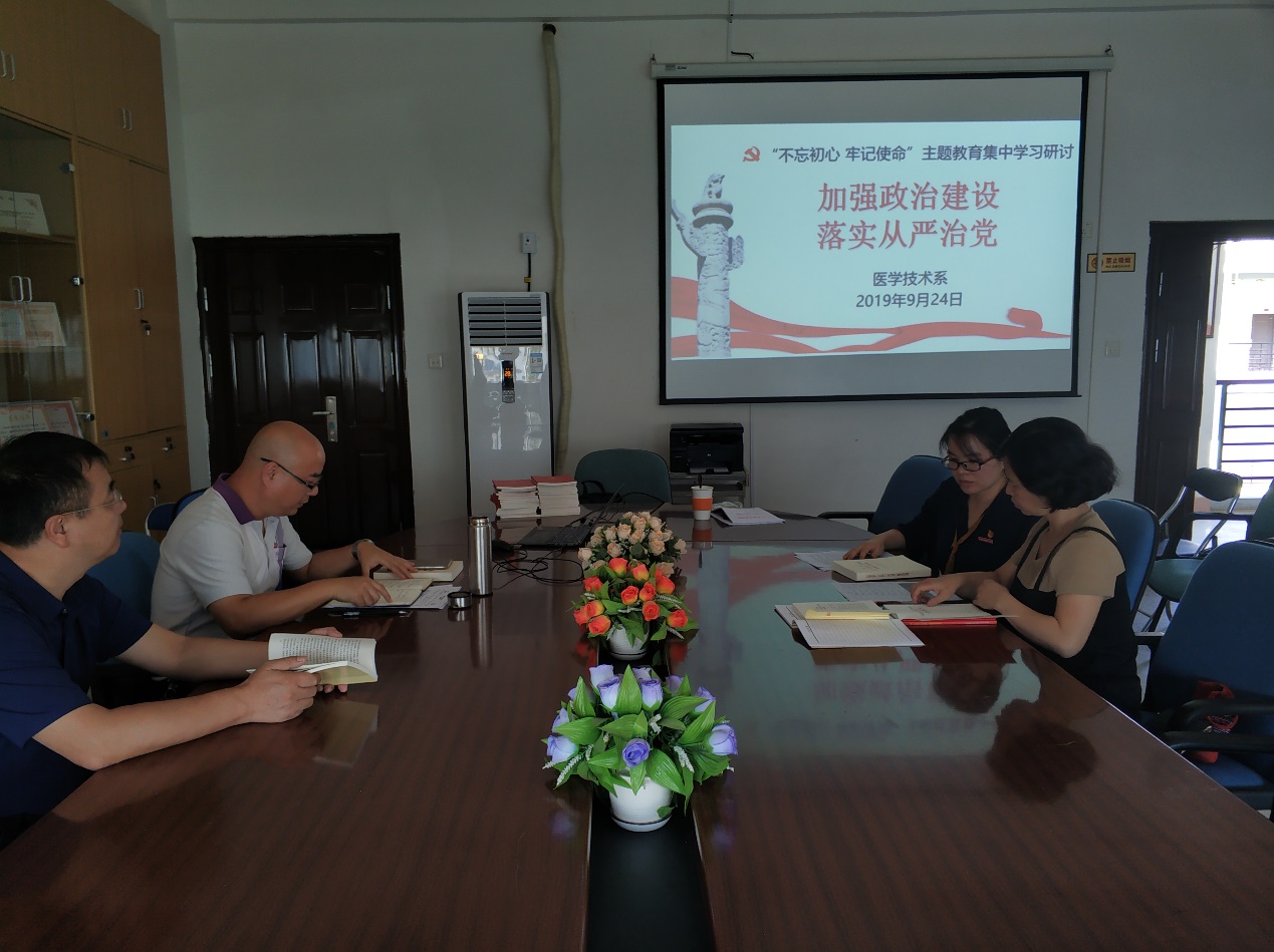 學(xué)習(xí)研討會(huì)上,醫(yī)學(xué)技術(shù)系領(lǐng)導(dǎo)班子首先共同學(xué)習(xí)了《習(xí)近平關(guān)于“不忘初心、牢記使命”重要論述選編》中的《堅(jiān)定不移推進(jìn)全面從嚴(yán)治黨》《牢固樹(shù)立“四個(gè)意識(shí)”,維護(hù)黨中央權(quán)威》等章節(jié),學(xué)習(xí)《習(xí)近平新時(shí)代中國(guó)特色社會(huì)主義思想學(xué)習(xí)綱要》中的六、十等部分,學(xué)習(xí)《中國(guó)共產(chǎn)黨黨內(nèi)重要法規(guī)匯編》中相關(guān)條例。