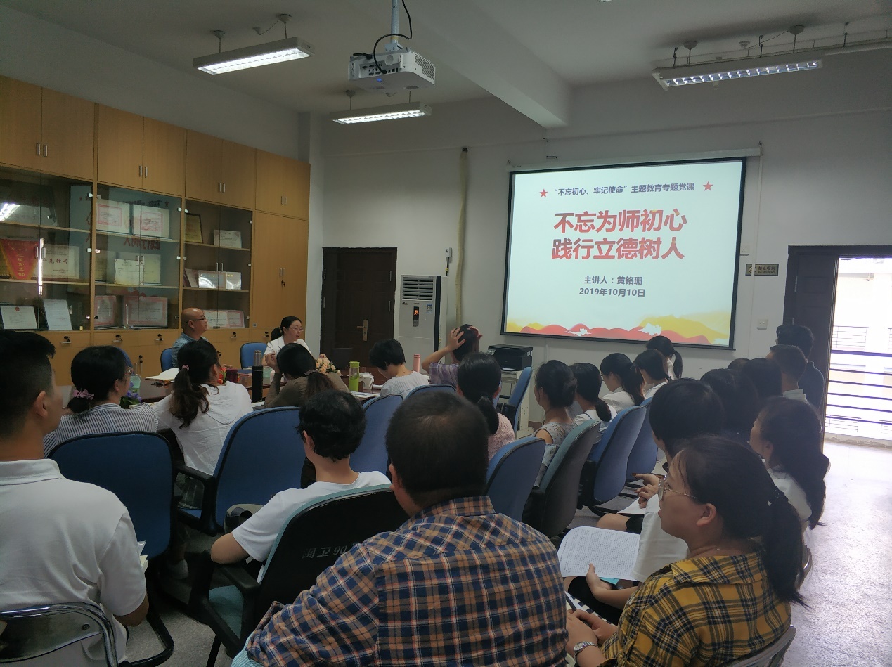 10月10日,學(xué)院黨委委員、副院長黃銘珊同志為醫(yī)學(xué)技術(shù)系全體黨員講授專題黨課《不忘為師初心 踐行立德樹人》。本次學(xué)習(xí)作為師德師風(fēng)教育內(nèi)容,醫(yī)學(xué)技術(shù)系黨總支安排了非黨員教師共同參加學(xué)習(xí)。