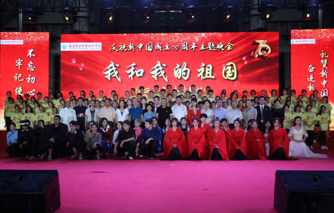 9月29日晚,學(xué)院舉行了“壯麗70年,奮斗新時(shí)代”慶祝國(guó)慶主題晚會(huì)。本場(chǎng)由黨委工作部主辦,醫(yī)學(xué)技術(shù)系、藥學(xué)系等承辦,結(jié)合“不忘初心、牢記使命”主題教育,分為序曲、旭日東升、揚(yáng)帆起航、走進(jìn)新時(shí)代、奮進(jìn)筑夢(mèng)等五個(gè)篇章,表達(dá)了全體師生共慶祖國(guó)華誕的喜悅之情。醫(yī)學(xué)技術(shù)系黨總支推送了大合唱《共和國(guó)之戀》,并邀請(qǐng)共建單位茶園街道的社區(qū)居民為晚會(huì)獻(xiàn)上了一場(chǎng)柔力球表演。醫(yī)學(xué)技術(shù)系學(xué)生黨支部全體黨員結(jié)合主題黨日活動(dòng)開(kāi)展,作為工作人員,全程參與了晚會(huì)的幕后工作;全系教職員工到場(chǎng)觀看晚會(huì)。醫(yī)學(xué)技術(shù)系關(guān)工委常務(wù)副主任馬少寧老師參與本場(chǎng)晚會(huì)的演出。