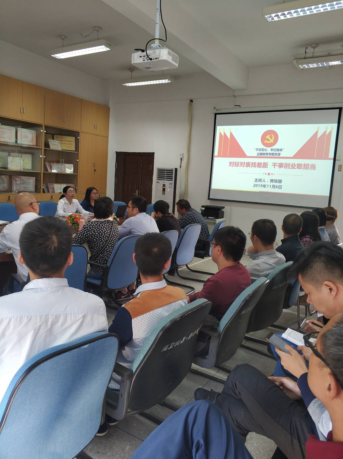 2019年11月6日,學(xué)院黨委委員、副院長(zhǎng)黃銘珊同志蒞臨醫(yī)學(xué)技術(shù)系,以《對(duì)標(biāo)對(duì)表找差距 干事創(chuàng)業(yè)敢擔(dān)當(dāng)》為題,在醫(yī)學(xué)技術(shù)系會(huì)議室講授主題教育專題黨課。醫(yī)學(xué)技術(shù)系黨總支負(fù)責(zé)人邱滾忠同志主持黨課,醫(yī)學(xué)技術(shù)系全體教職工到場(chǎng)聆聽,學(xué)院辦公室、保衛(wèi)處、繼續(xù)教育中心負(fù)責(zé)人等到場(chǎng)共同學(xué)習(xí)。