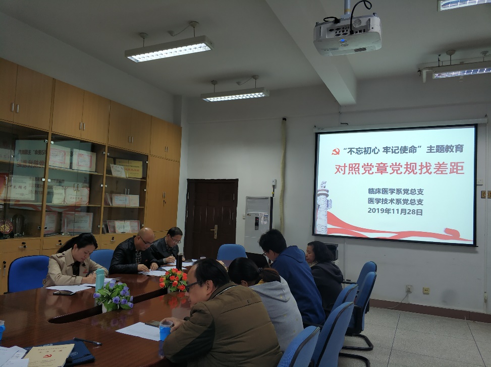 11月28日上午,醫(yī)學(xué)技術(shù)系黨總支召開對照黨章黨規(guī)找差距專題會議。會議由醫(yī)學(xué)技術(shù)系黨總支負(fù)責(zé)人邱滾忠主持,醫(yī)學(xué)技術(shù)系副主任魏碧娜應(yīng)邀列席。臨床醫(yī)學(xué)系黨總支班子同場列席,觀摩指導(dǎo)。