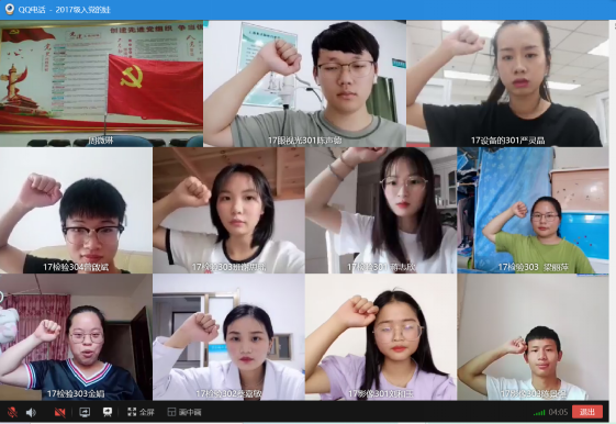 入黨宣誓儀式伊始,全體黨員起立,線上線下共同唱響了莊嚴(yán)的國際歌。隨后,李晶老師宣讀了參加本次入黨宣誓儀式的10名新黨員名單。在第二黨支部書記鐘偉雄老師的帶領(lǐng)下,蔡嘉敏等10名新入黨的預(yù)備黨員在“云端”面向黨旗,舉起右手,莊嚴(yán)宣誓,表達(dá)對黨的忠誠、為共產(chǎn)主義事業(yè)奮斗終身的決心。
