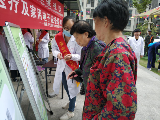 醫(yī)療及家用儀器維修, 貼心服務(wù)在入戶。由第二黨支部書記鐘偉雄老師帶隊,醫(yī)療設(shè)備應(yīng)用技術(shù)專業(yè)的師生自備專門維修設(shè)備和耗材,滿足社區(qū)居民日常家用電子儀器的維修需要,同時用專業(yè)知識向居民宣傳家用小型醫(yī)療電子儀器的使用方法及保養(yǎng)常識?;顒又?,師生還針對個別居民家不方便搬動家電到現(xiàn)場的特殊情況,開展入戶上門檢測和維修服務(wù),用專業(yè)技能“喚醒點亮”廢舊家電。