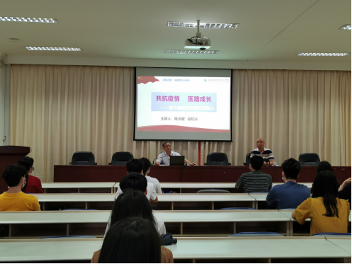為了教育學(xué)生涵養(yǎng)愛國(guó)主義情懷,幫助學(xué)生掌握疫情防控知識(shí)、增強(qiáng)疫情防控意識(shí)、提高疫情防控能力,引導(dǎo)學(xué)生關(guān)注自身心理健康、保持昂揚(yáng)的精神面貌,堅(jiān)定戰(zhàn)勝疫情的信心。2020年7月2日,陳貞健副院長(zhǎng)以《共抗疫情 ,醫(yī)路成長(zhǎng)——奮斗成就新時(shí)代最可愛的人》為題,采用“線上+線下”相結(jié)合的形式為醫(yī)學(xué)技術(shù)系返校復(fù)學(xué)學(xué)生講授思政戰(zhàn)“疫”第一課。醫(yī)學(xué)技術(shù)系邱滾忠副書記主持本次授課活動(dòng)。