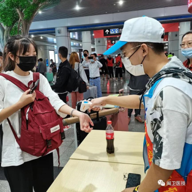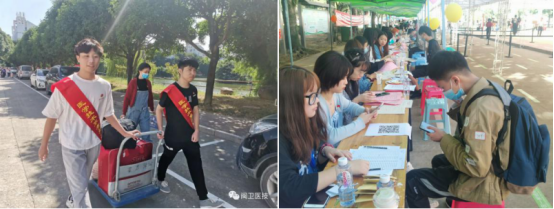迎新工作如火如荼,到處都是忙碌的身影。一入校門就有為新生測(cè)溫、核驗(yàn)身份、掃碼注冊(cè)、發(fā)放物品的老師。還有我系志愿者舉著“醫(yī)學(xué)技術(shù)系”牌子等待著他們,為他們指引方向。熱情的保安叔叔開著托運(yùn)車為新生們托運(yùn)行李。大家都時(shí)刻準(zhǔn)備在第一時(shí)間為新生們提供幫助。在炎炎烈日下,汗流浹背亦無暇顧及,每來一位新生,大家都爭先恐后地前去幫忙,不知疲憊。
