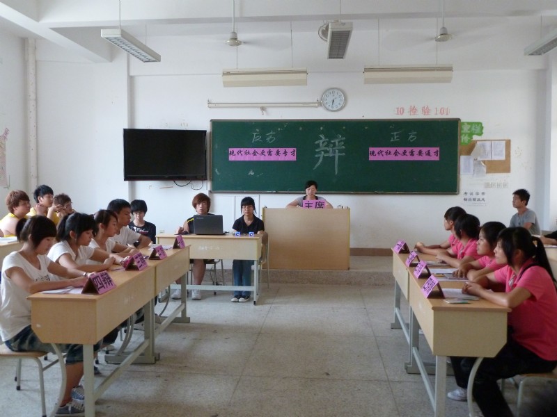 醫(yī)學技術系第四屆大專生辯論賽半決賽的兩場賽事分別于5月10日、11日下午5點30分在教學樓205教室激烈開辯。本次比賽采用國際大專生辯論賽賽制,增設了攻辯階段,使整場比賽更具看點。第一場辯論題目:現代社會更需要通才還是專才?對陣的正反方分別為10檢驗301和10影像301(一隊)代表隊。第二場辯論題目:大學生寬松管理利大于弊還是弊大于利?正反方分別為10影像301(二隊)和09檢驗301代表隊。