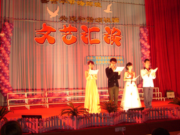 為豐富校園文化生活,陶冶同學(xué)們的藝術(shù)情操,檢驗(yàn)影像系于2009年5月21日在學(xué)術(shù)廳隆重舉行“盛世華章鑄輝煌,共建和諧頌祖國(guó)”文藝晚會(huì)。黃開(kāi)良副院長(zhǎng)、學(xué)工處鄭力宏處長(zhǎng)、院團(tuán)委邱滾忠書(shū)記、檢驗(yàn)影像系馬少寧主任、洪聿榮書(shū)記、郭禮堅(jiān)副主任以及各班輔導(dǎo)員、兼職班主任出席了本次晚會(huì)。 晚上6:30, 一曲《十送紅軍》正式拉開(kāi)文藝晚會(huì)的序幕。今年是建國(guó)60周年,六十年風(fēng)雨兼程鑄就強(qiáng)盛的中國(guó),六十載勵(lì)精圖治共創(chuàng)世紀(jì)的輝煌,《十送紅軍》情真意切,唱出了軍民魚(yú)水情。整臺(tái)晚會(huì)節(jié)目新穎多樣、內(nèi)容積極向上,學(xué)術(shù)廳里無(wú)不洋溢著歡樂(lè)的氣氛。有剛勁有力的功夫扇《中國(guó)功夫》,舞姿翩翩的扇子舞《青花瓷》、樸素灑脫的苗族竹竿舞和火暴的勁舞《No Body》。相聲《庸醫(yī)》、小品《我像誰(shuí)》、《梁?!凡粫r(shí)引起場(chǎng)下陣陣笑聲。歌曲串燒《歌舞青春》、男女合唱《流星下的愿》、獨(dú)唱《他不愛(ài)我》、歌伴舞《說(shuō)唱臉譜》也為晚會(huì)增色不少。傳統(tǒng)中國(guó)茶藝表演《茶韻》、環(huán)保時(shí)裝走秀《Over the rainbow》、氣勢(shì)磅礴的詩(shī)朗誦《這片山河,這個(gè)時(shí)代》將氣氛一次又一次地推向高潮。最后,晚會(huì)在健美操《Trance Mix》中落下了帷幕。 整場(chǎng)晚會(huì)通過(guò)輕松活潑的節(jié)目,獨(dú)特新穎的創(chuàng)意,充分展示了新一代大學(xué)生多才多藝、富有朝氣;展現(xiàn)出青春活力、健康向上的校園文化精神。