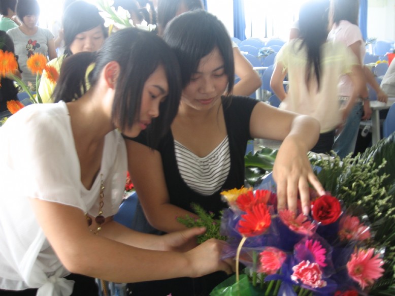 參賽選手多達(dá)60人,共29組。花卉有百合、玫瑰、滿天星、萬(wàn)年青、龜背竹等二十多種;器皿則有素雅花盆、玻璃花瓶、竹筒、藤籃等。同學(xué)們懷著對(duì)奧運(yùn)會(huì)的期盼、對(duì)四川災(zāi)區(qū)同胞的祝福和把母校建設(shè)成為一流高職高專類院校的決心,充分發(fā)揮自己的想象力,把自己對(duì)生活和美的感悟,通過手中的一枝枝鮮花,淋漓盡致地表達(dá)了出來(lái)。