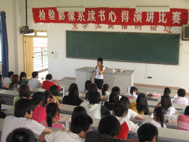為響應(yīng)學(xué)院藝術(shù)節(jié)號(hào)召,檢驗(yàn)影像系于5月8日下午在第2階梯教室舉行讀書(shū)心得演講比賽。擔(dān)任此次比賽的評(píng)委有郭禮堅(jiān)副主任、陳茜老師、翁秉觀老師、傅衍達(dá)老師以及4位學(xué)生會(huì)干部。
