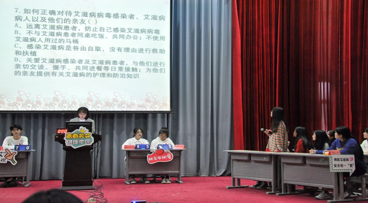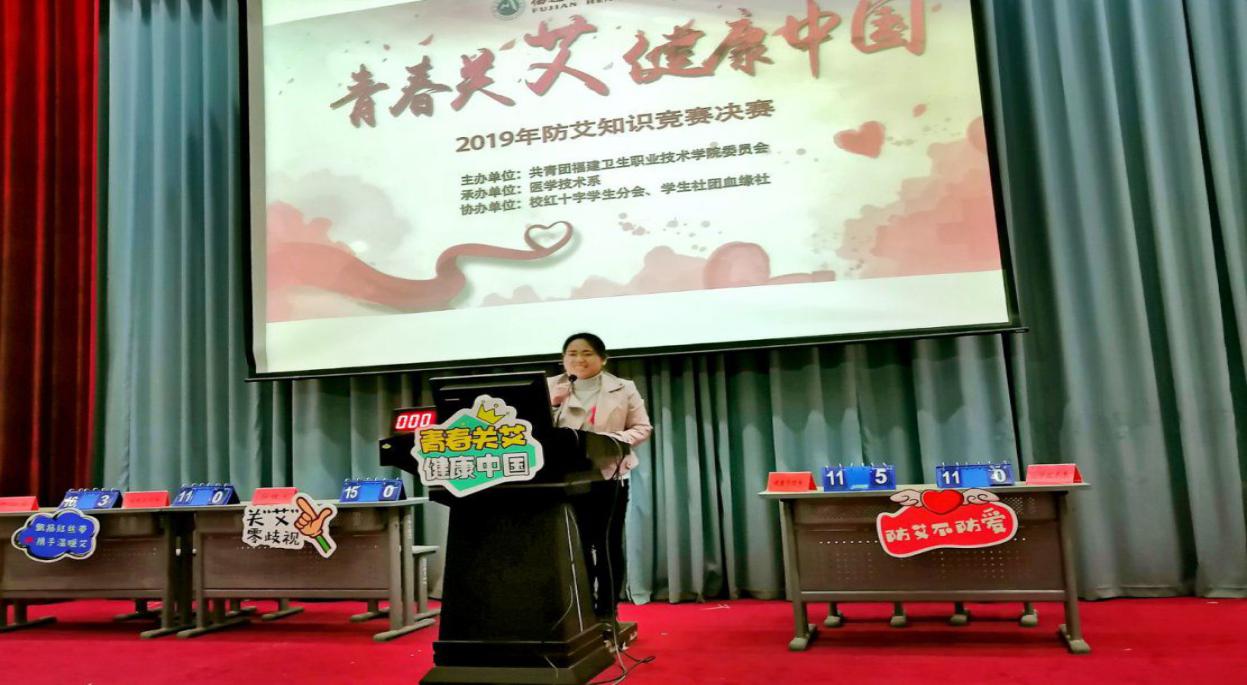 防治艾滋人人參與,和諧生活家家受益。我系于12月19日在學(xué)術(shù)廳舉行“青春關(guān)艾·健康中國(guó)”主題宣傳活動(dòng)。為了這次防艾知識(shí)競(jìng)賽,選手們經(jīng)過(guò)重重困難,終于進(jìn)入了最后的總決賽,他們來(lái)自各個(gè)系的選手們并且在比賽過(guò)程中積極發(fā)言,回答問(wèn)題。在搶答環(huán)節(jié)中,五組選手們也都爭(zhēng)分奪秒的按下手中的按鈕來(lái)?yè)尨?,過(guò)程十分精彩。在觀眾互動(dòng)環(huán)節(jié)中,臺(tái)下的同學(xué)也是對(duì)答如流,在主觀題部分,每組選手選完題數(shù)依舊題目回答的正確率也是極高,專(zhuān)家大部分也都給予了高分,可見(jiàn)參賽者們對(duì)防艾知識(shí)熟悉度極高。一點(diǎn)一滴關(guān)愛(ài)艾滋群體,一言一行彰顯社會(huì)文明。防艾知識(shí)競(jìng)賽用特殊的方式將知識(shí)內(nèi)容源源不斷的傳遞下去,用選手們?cè)谂_(tái)上通過(guò)回答問(wèn)題,從而讓大家普及防艾知識(shí),從而來(lái)預(yù)防艾滋。其實(shí)艾滋并不可怕,我相信它總有被征服的一天,讓我們共同努力,真愛(ài)生命,防治艾滋,因?yàn)榘詯?ài),讓飄動(dòng)的紅絲帶,連接著關(guān)愛(ài),努力為戰(zhàn)勝艾滋而奮斗。