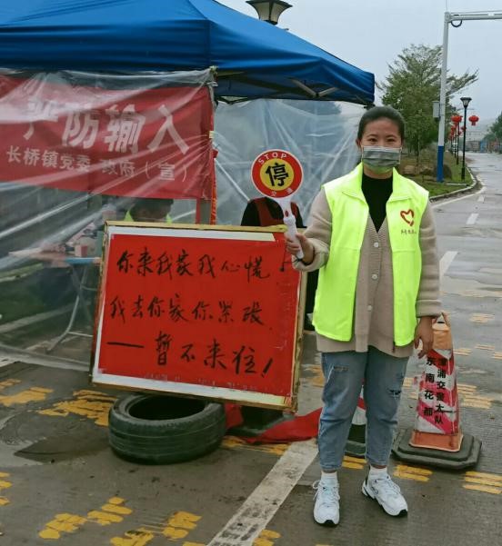 18眼視光302班陳抒靜同學(xué)是福建省漳州市南靖縣豐田鎮(zhèn)豐田社區(qū)抗擊疫情一線志愿者,職責(zé)是與社區(qū)工作人員一起勸返外縣人員來訪查驗(yàn)車輛進(jìn)出通行證,引導(dǎo)宣傳抗擊疫情相關(guān)知識政策,測量體溫和提醒佩戴口罩。她說:“查驗(yàn)工作很順利,大部分人都非常理解和支持我們志愿者的工作,身處在抗疫防疫第一線時,深刻地感受到這場突如其來的疫情對人們的考驗(yàn)。身為一名志愿者,我會為抗擊疫情出一份力,用行動抗擊疫情。”