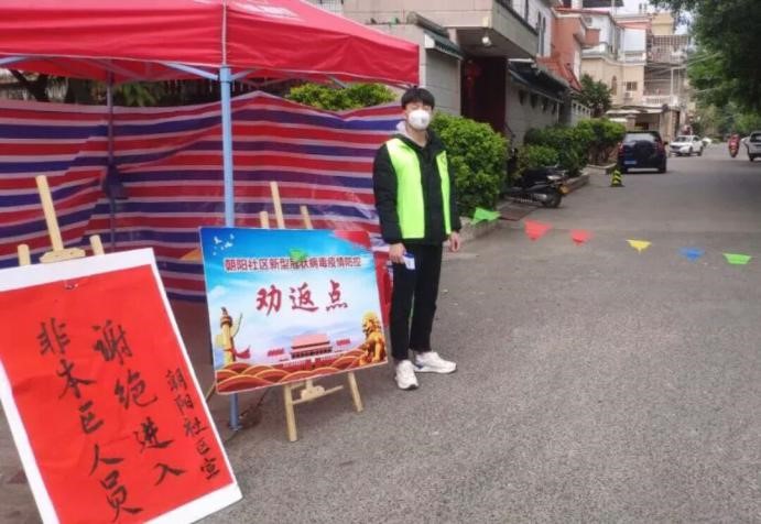 18影像302班官蕾同學(xué)身為一名醫(yī)學(xué)生,始終牢記著醫(yī)學(xué)生誓言!面對(duì)逐漸擴(kuò)散的疫情,在縣團(tuán)委的號(hào)召下,她自愿加入福建省南平市順昌縣和勤社區(qū)志愿者的隊(duì)伍中,負(fù)責(zé)在社區(qū)門口簽發(fā)出入證,記錄居民出入次數(shù)的工作。她感言道:做志愿者奉獻(xiàn)社會(huì)是一件很有成就感的事情,在這次志愿者行動(dòng)中,看著空無一人的街道,團(tuán)員和黨員守衛(wèi)的大門,有廣大人民群眾團(tuán)結(jié)一心戰(zhàn)勝新型冠狀病毒的決心,心中一股暖流,是中國(guó)人民守望相助的溫暖,是一方有難八方支援的感動(dòng)。我堅(jiān)信,善良勇敢的中國(guó)人民一定會(huì)很快打贏這場(chǎng)沒有硝煙的戰(zhàn)爭(zhēng)!