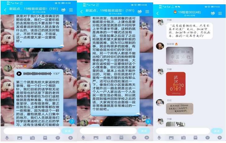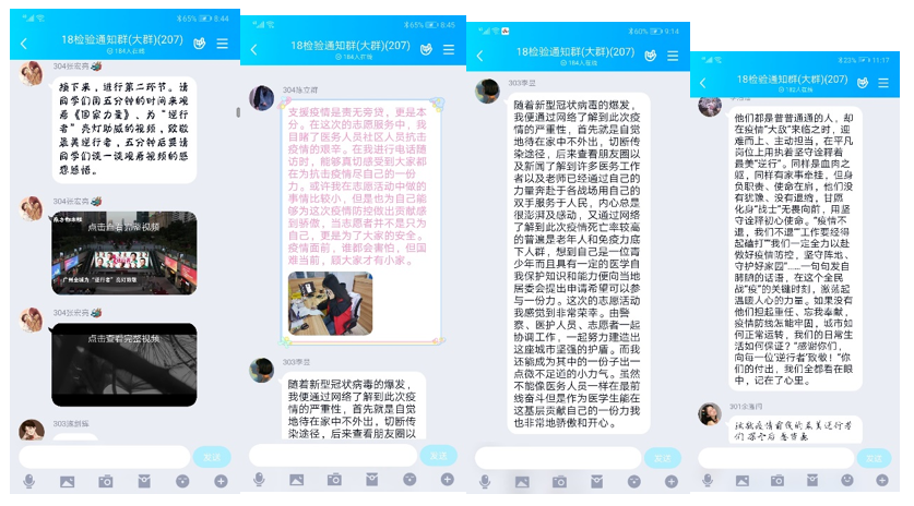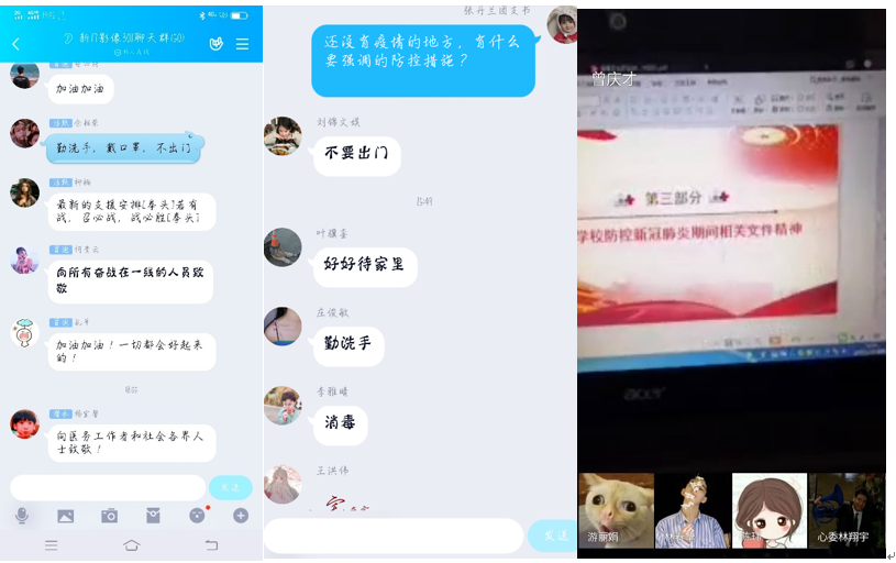 團(tuán)支書組織同學(xué)們觀看《國(guó)家力量》為“逆行者”助威的視頻,致敬最美逆行者。在假期利用空余時(shí)間參與防疫志愿服務(wù)的志愿者們,也向大家分享自己在志愿服務(wù)過程中的感受與感悟,同學(xué)們紛紛為其點(diǎn)贊!張宏亮同學(xué)表示:“第一次在線上開團(tuán)日感觸很深刻,抗疫醫(yī)務(wù)工作人員那種奮不顧身, 舍己為人的精神, 彰顯了醫(yī)者的使命與擔(dān)當(dāng), 是我們的學(xué)習(xí)榜樣!也體會(huì)到了大家對(duì)抗疫醫(yī)務(wù)工作人員那一股崇高的敬意和要向他們學(xué)習(xí)的精神。”