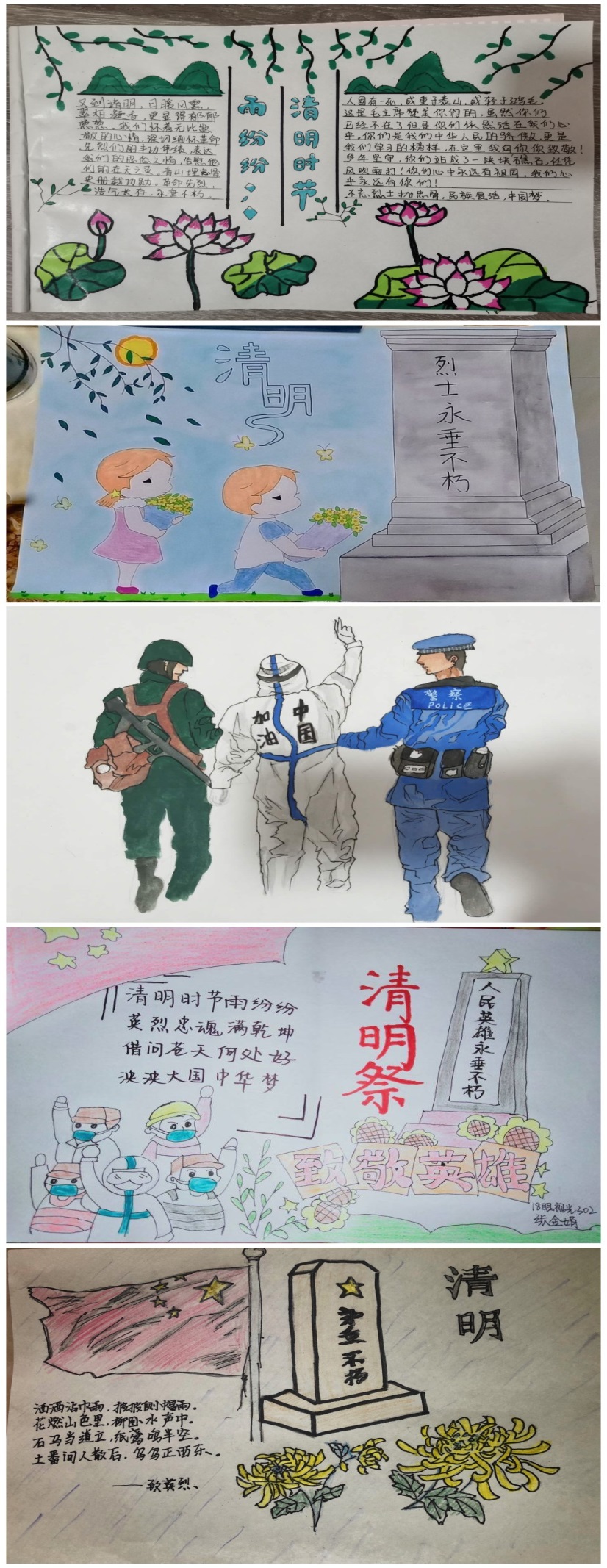 清明節(jié)是生者對逝者表達(dá)情感、傾訴衷腸的日子,也是啟發(fā)生者珍惜生命、珍惜當(dāng)下的重要契機(jī)。通過本次活動(dòng),同學(xué)們紛紛表示,我們在共同抗擊疫情,悼念革命烈士,緬懷先烈豐功偉績的同時(shí),利用手中的畫筆,向他們致敬;我們應(yīng)感恩祖輩,學(xué)習(xí)先烈的英勇精神;我們都是一顆種子,可以讓生命發(fā)揚(yáng)光大。