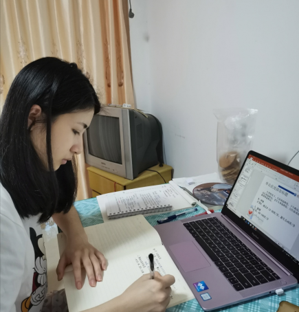 鐘曉娜同學(xué)說(shuō):“在疫情如此嚴(yán)重的情況下也阻止不了我們學(xué)習(xí)的腳步。最近3個(gè)多月,由于疫情的原因,我們宅家學(xué)習(xí)。上網(wǎng)課就是通過(guò)軟件在家直播。一臺(tái)電腦,一部手機(jī),一個(gè)筆記本,一支筆,懷著一顆求學(xué)的心開始學(xué)習(xí)。網(wǎng)課比起平常在學(xué)校學(xué)習(xí)需要更多自律,許多事情都需要靠自己自覺完成。希望在這次網(wǎng)課中,我們不僅能夠?qū)W到新知識(shí),還能做到自律,養(yǎng)成良好的學(xué)習(xí)習(xí)慣。”