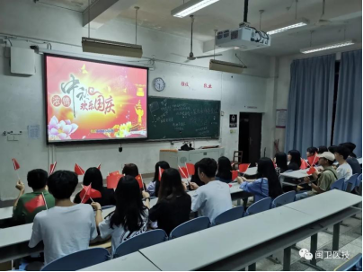 首先,團(tuán)學(xué)干部們合唱《我和我的祖國》,向祖國表達(dá)深情熱愛之心,為中華人民共和國成立71周年獻(xiàn)禮。并通過在黑板上留言,抒發(fā)了愛國情感。
