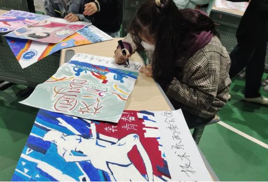 為了更好的賽程氛圍,同學(xué)們利用課余時(shí)間布置大本營(yíng),用自己的雙手繪制一張又一張精美的畫報(bào),并為運(yùn)動(dòng)員們提供了豐厚的補(bǔ)給,幫助運(yùn)動(dòng)員們迅速恢復(fù)體力。除此之外,還裝飾了“驚鴻一瞬”照片墻和龍虎榜,記錄醫(yī)技師生運(yùn)動(dòng)會(huì)的精彩瞬間。