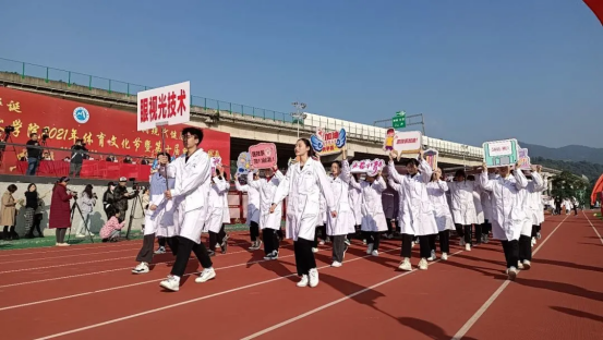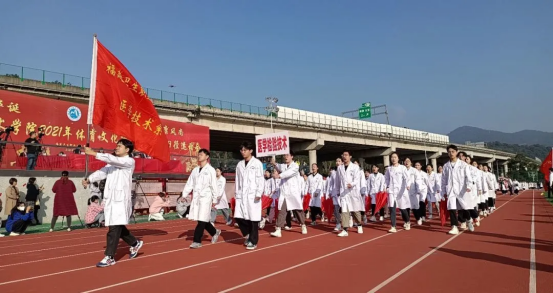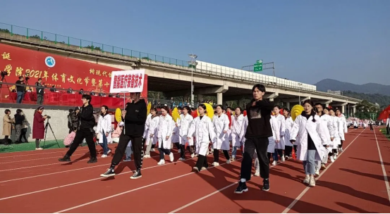 伴隨著運(yùn)動(dòng)員進(jìn)行曲,各專業(yè)代表隊(duì)逐一入場(chǎng)檢閱。醫(yī)學(xué)技術(shù)系四個(gè)專業(yè)方陣以昂揚(yáng)的精神面貌、嘹亮的口號(hào)、整齊的步伐亮相在全體同學(xué)面前。