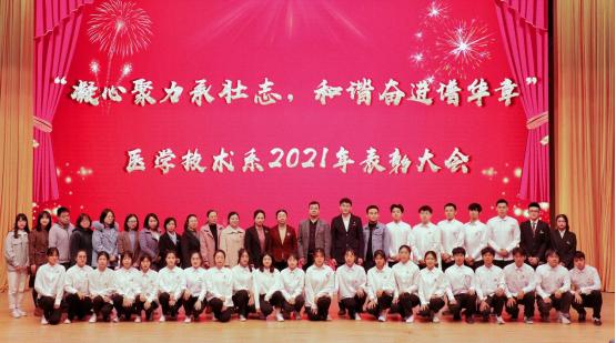 表彰大會在雄壯的國歌聲中拉開帷幕。會議伊始,回顧醫(yī)學技術(shù)2020—2021學年活動集錦視頻。醫(yī)學技術(shù)系始終秉持著“明德 勵學 強技 敬業(yè)”的系訓,在社會實踐中發(fā)揮專業(yè)課上所學知識,做到理論與實踐相結(jié)合;在課余時間開展內(nèi)容豐富、積極向上的文體活動等,進一步提高育人成效。