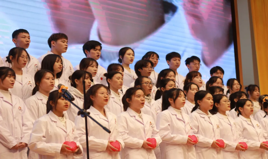 21檢驗301班全體同學演唱校歌《仁心如花》,21智備302班全體同學演唱愛國歌曲《團結(jié)就是力量》、《少年說》讓我們感受到了同學們蓬勃的朝氣和青春的力量,在他們激情澎湃的歌聲中,本次表彰大會落下帷幕。