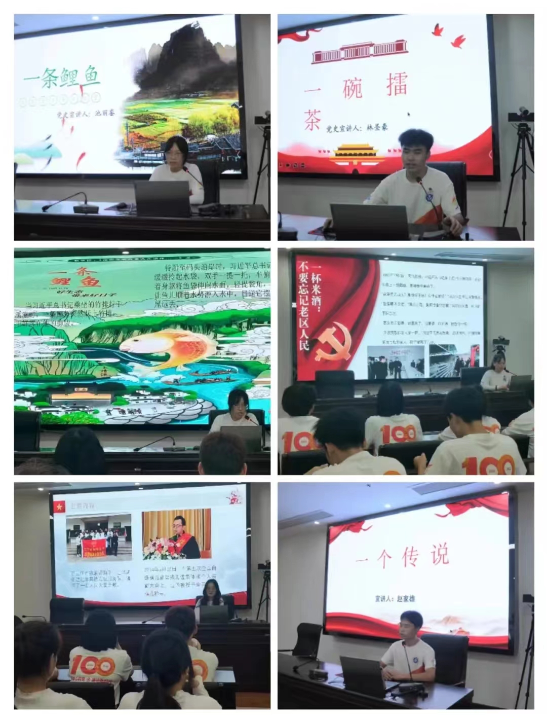 林圣豪、池麗鑾、黃思怡、陳蘇、趙家雄五位入黨積極分子生動地講述了習(xí)近平總書記的三明故事《一碗擂茶》、《一條錦鯉》、《一杯米酒》、《一段歌聲》和《一個傳說》。同學(xué)們深刻體會到習(xí)近平總書記多次深入三明調(diào)研的重要意義,以及對三明人民的親切關(guān)懷。