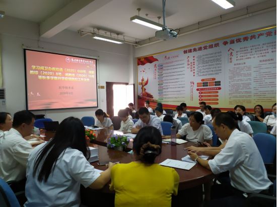 時(shí)值金秋九月,新冠肺炎疫情防控處于常態(tài)化階段,2019級(jí)和2017級(jí)五年專(zhuān)學(xué)生返校復(fù)學(xué)在即。為切實(shí)做好疫情防控工作,2020年9月3日,醫(yī)學(xué)技術(shù)系組織全體教師共同認(rèn)真學(xué)習(xí)了閩衛(wèi)辦疾控函〔2020〕668號(hào)、閩委教綜〔2020〕8號(hào)、閩教體〔2020〕16號(hào)等秋季學(xué)期開(kāi)學(xué)疫情防控工作文件精神。