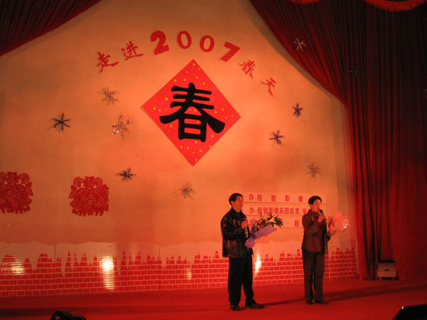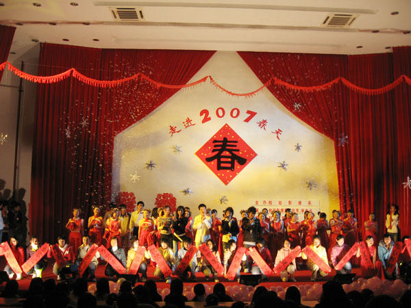 2007年1月19日晚,福建衛(wèi)生職業(yè)技術(shù)學(xué)院檢驗(yàn)影像系在院學(xué)術(shù)廳舉辦“走進(jìn)春天”2007年迎新春文藝晚會(huì)。這是學(xué)院實(shí)行二級(jí)管理以來(lái)檢驗(yàn)影像系舉辦的第一場(chǎng)晚會(huì)。應(yīng)邀出席晚會(huì)的有院領(lǐng)導(dǎo)魏立娜副書記、黨辦董榕主任、學(xué)工處黃銘珊副處長(zhǎng)、院團(tuán)委邱滾忠老師以及兄弟系部的書記、團(tuán)總支書記、秘書,檢驗(yàn)影像系全體老師和部分同學(xué)參加晚會(huì)。 晚會(huì)在喜慶的舞蹈《好日子》中拉開(kāi)帷幕,馬少寧主任上臺(tái)對(duì)檢驗(yàn)影像系本學(xué)期的工作做了簡(jiǎn)短總結(jié),對(duì)下學(xué)期的工作提出要求,并給大家拜了早年;接著,05檢驗(yàn)501班集合了福建省九地市18位同學(xué)用《吉祥方言》為大家送上節(jié)日的祝福,讓大家感受到了檢驗(yàn)影像系這個(gè)大家庭的溫暖;隨后,馬少寧主任和蘭寶金書記也一展歌喉,優(yōu)美的和聲《為了誰(shuí)》打動(dòng)了在場(chǎng)所有的觀眾;05影像301班林情、瞿宜村同學(xué)的詩(shī)朗誦《走進(jìn)春天》讓同學(xué)們感受到了春天的氣息;游戲互動(dòng)環(huán)節(jié),同學(xué)們踴躍參與;熱辣動(dòng)感的街舞串燒展示了同學(xué)們的年輕活力;相聲《舊曲新唱》展現(xiàn)了息息相關(guān)的校園生活;特邀嘉賓表演的勁舞overprotected、印度舞、歌曲《天高地厚》、吉他彈奏原創(chuàng)歌曲《陽(yáng)光圣地》、獨(dú)舞《梁?!方o晚會(huì)增添不少色彩…………最后,迎新春晚會(huì)在全體演員同聲合唱的《明天會(huì)更好》中圓滿結(jié)束。 本次晚會(huì)由檢驗(yàn)影像系團(tuán)總支、學(xué)生會(huì)承辦,軒輝超市贊助,晚會(huì)共設(shè)15個(gè)節(jié)目,歷時(shí)近兩個(gè)小時(shí)。節(jié)目精彩紛呈,形式多樣,現(xiàn)場(chǎng)氣氛熱烈,掌聲雷動(dòng)。當(dāng)晚院學(xué)術(shù)廳座無(wú)虛席,在晚會(huì)過(guò)程中不斷有同學(xué)入場(chǎng)站著觀看節(jié)目。