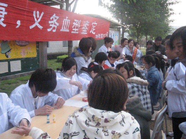 為體現(xiàn)學(xué)院義工宗旨,結(jié)合檢驗專業(yè)知識,牢固ABO血型鑒定的操作技能,醫(yī)學(xué)技術(shù)系06檢驗502班級于2009年12月3日下午在教學(xué)樓宣傳欄前舉辦了“關(guān)愛生命健康,義務(wù)血型鑒定”的血型初篩活動。