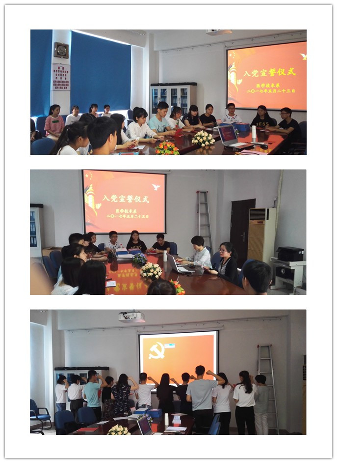 2017年5月23日上午醫(yī)學(xué)技術(shù)系黨總支在系部會(huì)議室進(jìn)行新黨員入黨宣誓儀式。儀式由學(xué)生黨支部書記黃玲云主持,各黨支部教師代表、新入黨的12名預(yù)備黨員和部分入黨積極分子參加了儀式。
