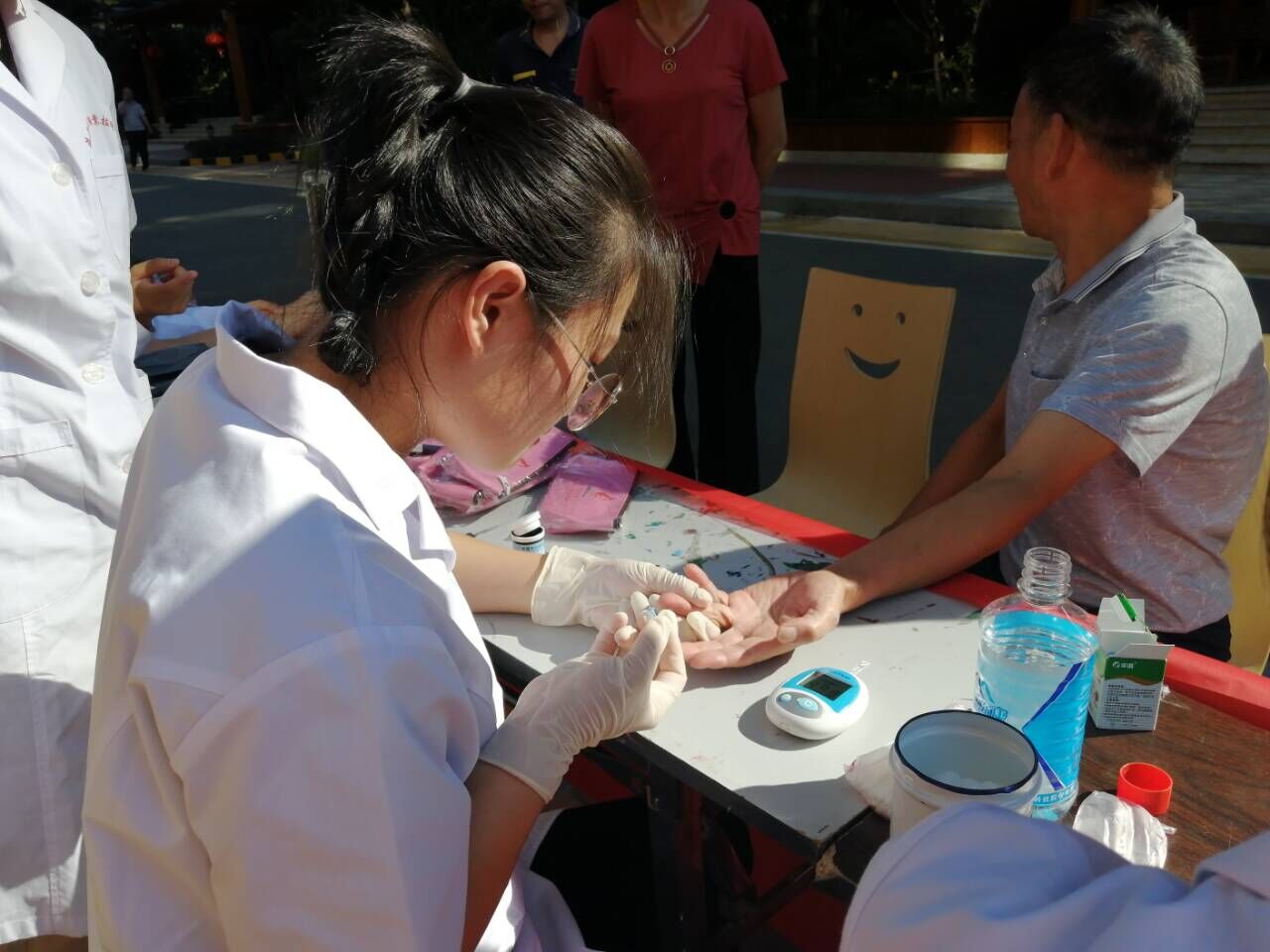 本次活動(dòng)吸引了約80位社區(qū)居民的積極參與。黨員教師向社區(qū)居民們認(rèn)真講解了高血脂防治知識(shí)和獻(xiàn)血的各種益處,讓居民們充分認(rèn)識(shí)到獻(xiàn)血不但有益身心健康,還能為社會(huì)做貢獻(xiàn)。與此同時(shí),同學(xué)們熱情而專業(yè)地為居民們測血型、量血壓,并囑咐高血壓的居民們應(yīng)該注意的事項(xiàng)。世茂小區(qū)居民為老師、同學(xué)們的專業(yè)解答、周到服務(wù)表示贊許。