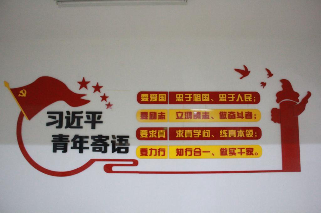 走進D樓大廳,首先映入眼簾的是習近平總書記對青年的寄語,引領(lǐng)時代新人走好人生之路。